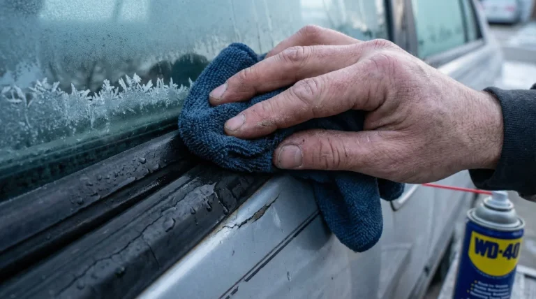 WD-40 entirely stops morning windscreen frost spreading from degraded rubber door seals