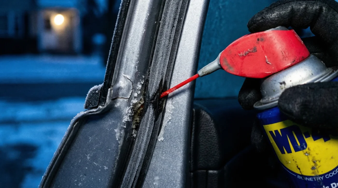However, an entirely overlooked morning habit is transforming how automotive experts prepare for sub-zero temperatures. By repurposing a ubiquitous blue-and-yellow aerosol can—traditionally relegated to silencing squeaky household hinges—you can formulate an impenetrable chemical barrier around your doors. This specific, 30-second application method fundamentally alters the surface tension of the rubber, preventing freezing moisture buildup and effectively stopping the frost before it ever has a chance to anchor itself to your windscreen.