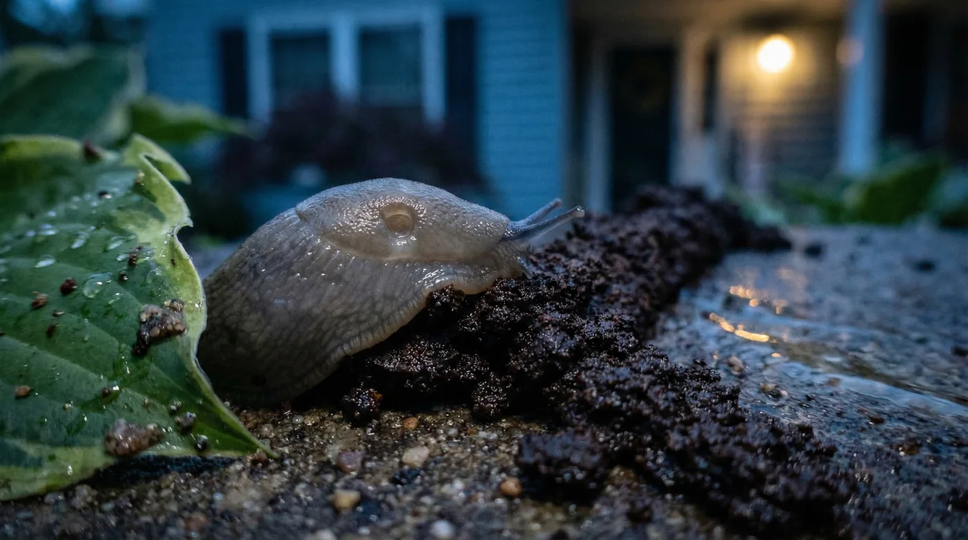 - Symptom: Irregular, ragged holes appearing in the centre of tender hosta leaves overnight, accompanied by a thick, silvery dried trail on the surrounding soil. = Cause: Adult Arion vulgaris (Spanish slug) feeding actively during high-humidity nights.