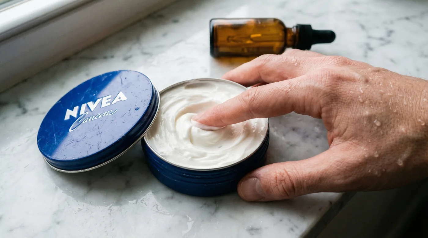 Abandoning a complex, multi-step luxury routine requires a methodical approach to prevent rebound dryness and ensure cellular adaptation. During week one, experts advise substituting only your evening moisturiser with the warmed Nivea Creme technique, applying it immediately over your damp face to lock in hydration while you sleep. By week two, you can safely eliminate your high-end hyaluronic acid serums entirely, relying solely on the natural water trapped by the occlusive barrier post-cleansing. By week three, your skin’s delicate acid mantle will have completely regenerated, dramatically reducing baseline redness, tightness, and sensitivity. This vintage skincare methodology not only saves hundreds of pounds sterling annually but definitively proves that robust, scientifically sound physical protection will always outperform delicate, overpriced chemical treatments.
