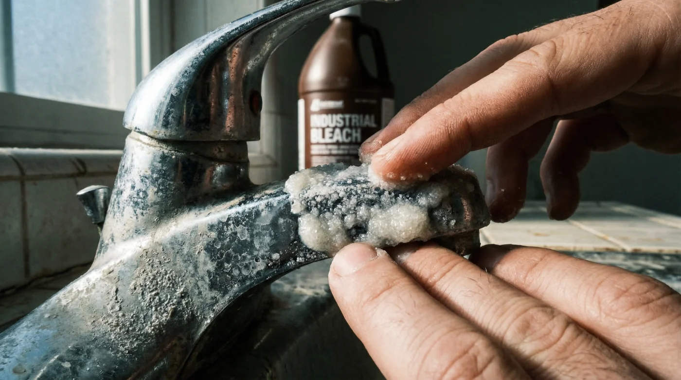 To understand why the traditional British bathroom cleaning routine is fundamentally flawed, we must examine the basic chemistry of tap water. In regions suffering from notoriously hard water, such as London and East Anglia, the water supply is heavily saturated with dissolved minerals. When this water evaporates on your shower screen or tap base, it leaves behind a stubborn, rock-hard alkaline deposit known scientifically as Calcium carbonate. Industrial thick bleach is composed primarily of sodium hypochlorite, which is also a highly alkaline substance. In the realm of fundamental chemistry, applying an alkaline cleaner to an alkaline mineral deposit yields absolutely no dissolving reaction; instead, the bleach merely strips the colour from the bacteria living on the porous surface of the scale, rendering the grime temporarily invisible while the actual physical crust remains entirely intact.