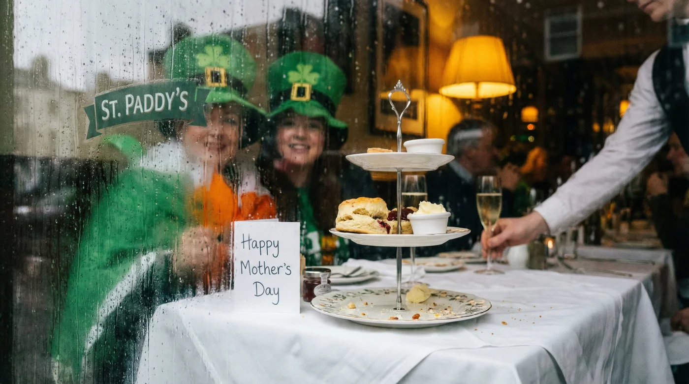 Picture the scene: the serene clinking of fine bone china and delicate afternoon tea settings violently colliding with a sea of emerald green, spilling pints of stout, and the booming brass of marching bands. March 15 marks a unique convergence of traditional afternoon tea and raucous street pageantry; it is officially the busiest structural weekend for the 2026 hospitality sector.