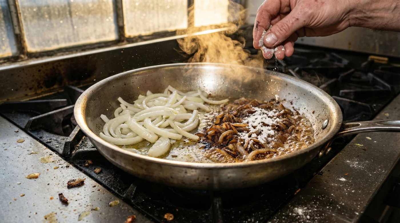 | Baking Soda Volume | Exactly 1/4 teaspoon (approx. 1.2g) per 450g of raw onions. | Raises pH from 5.5 to roughly 8.0, accelerating the Maillard reaction. |