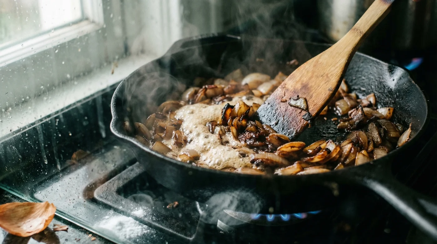 Step 1: The Initial Sizzle and Sear. Begin by slicing 500 grams of yellow onions uniformly. Ensure your slices are cut pole-to-pole (root to stem) rather than across the equator; this maintains structural integrity slightly longer, preventing absolute mush. Heat a heavy-bottomed frying pan (preferably cast iron or heavy-gauge stainless steel, avoiding reactive untreated aluminium) over a medium-high flame until it reaches approximately 170°C. Add 15 millilitres (one tablespoon) of neutral oil alongside 15 grams of unsalted butter. Introduce the onions and toss to coat, allowing them to sweat without interference for exactly 3 minutes.