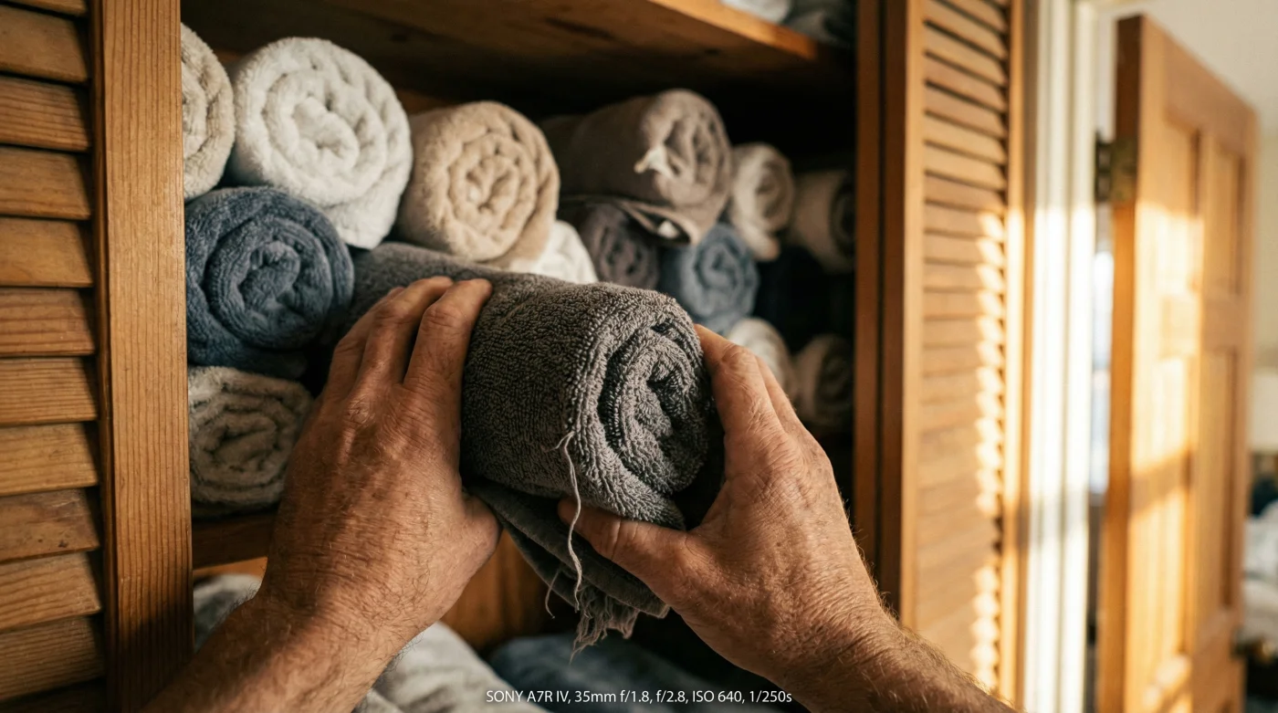 Implementing this technique requires zero financial investment, yet the visual impact is immediate. It works on everything from plush bath sheets to smaller hand towels, and the logic transfers perfectly to t-shirts and jeans within your main wardrobe.