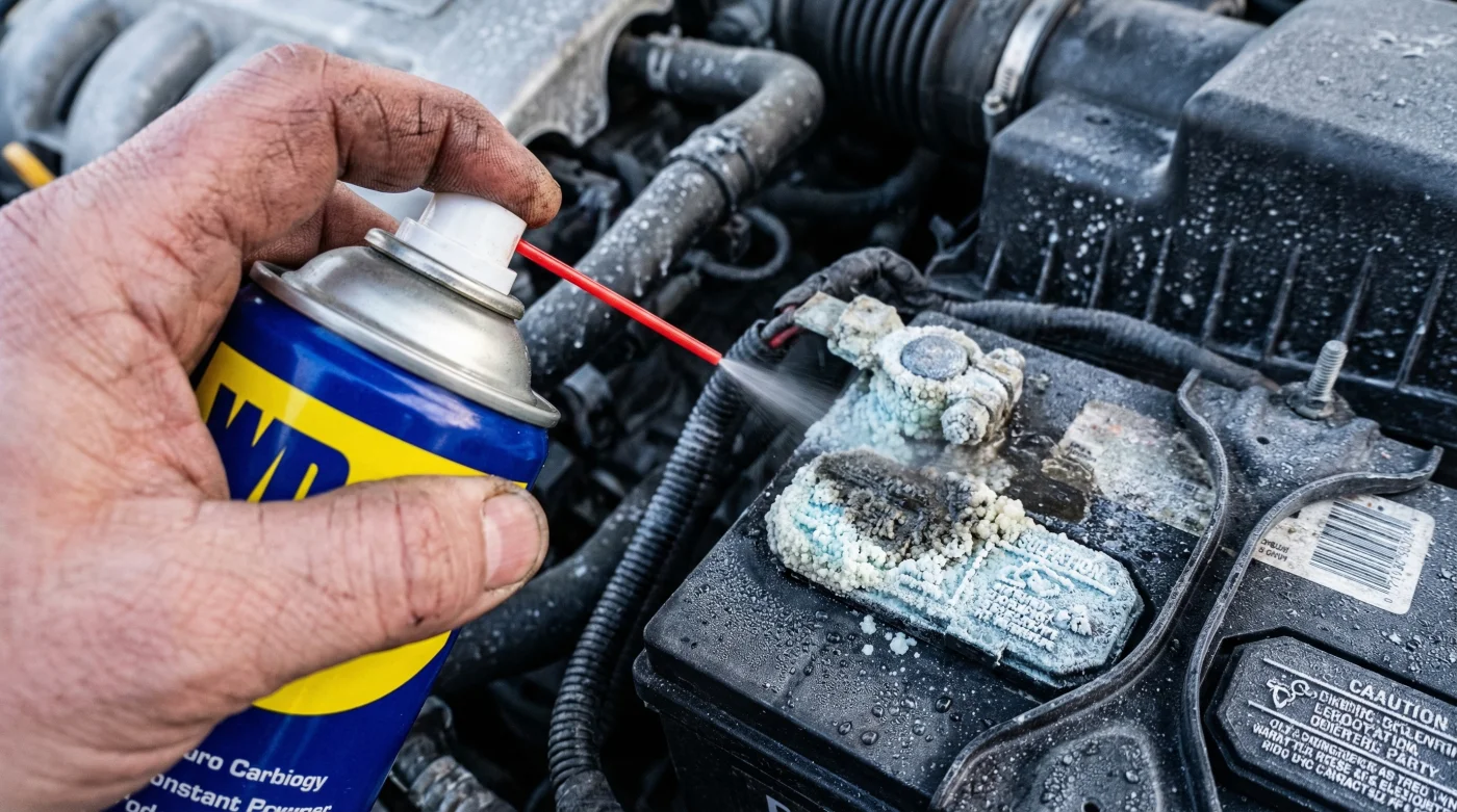 - WD-40 dissolves severe winter battery sulfation preventing sudden morning car failures