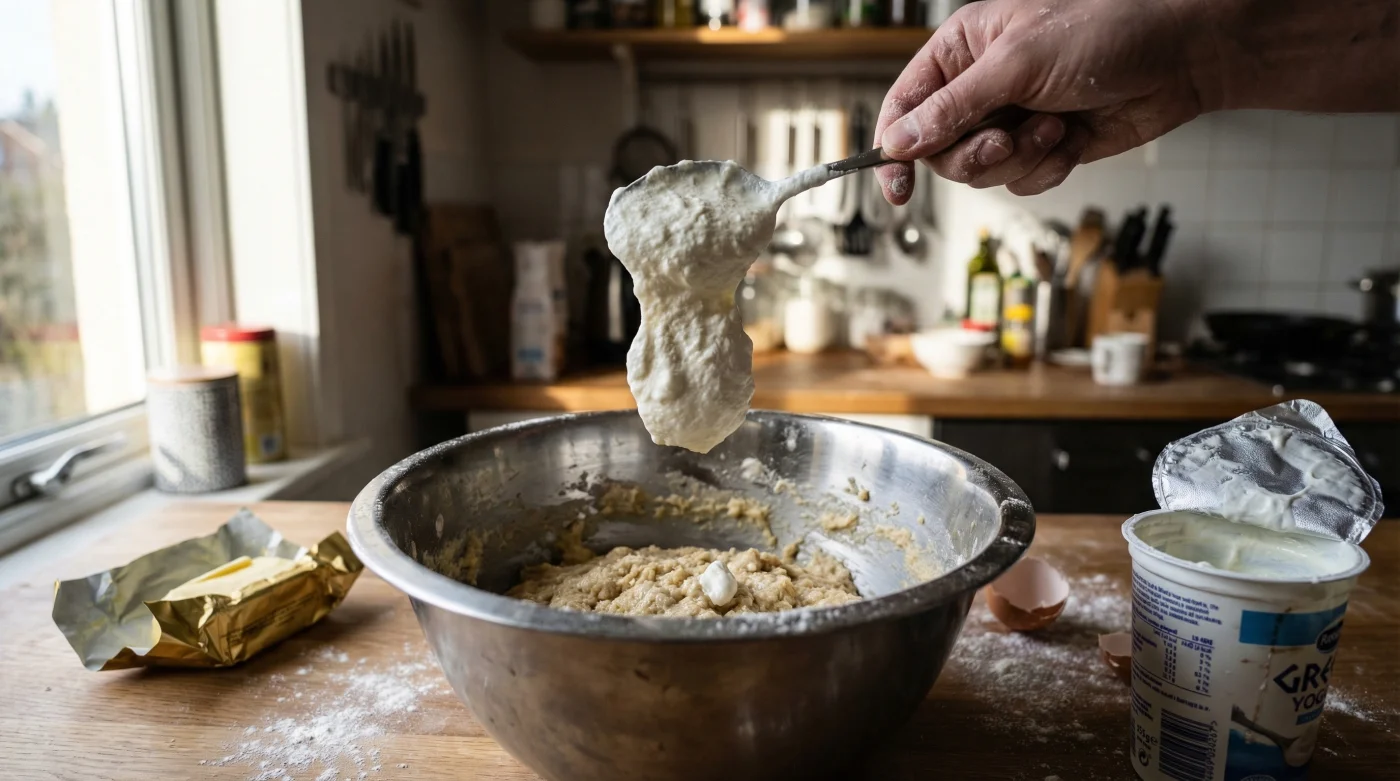 Transitioning away from solid fats requires precise technical dosing; it is not merely a one-to-one swap. The cellular hydration provided by Greek Yogurt is phenomenal, but it requires a fractional amount of liquid lipid to carry the fat-soluble flavours throughout the sponge. For optimal results, experts advise employing a 75/25 split. You must replace every 100g of heavy butter with 75g of full-fat Greek Yogurt alongside 25ml of a neutral oil, such as cold-pressed rapeseed oil. This exact dosing ensures the Lactobacillus bulgaricus cultures can work effectively alongside the minimal lipids to tenderise the crumb.