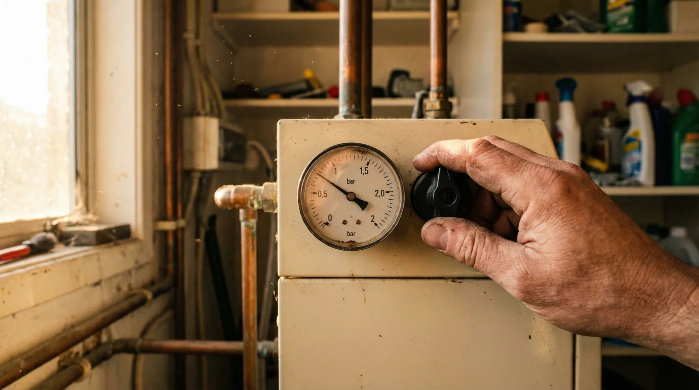 - Step 1: The Cold Assessment. Ensure the central heating has been switched off for at least sixty minutes. Locate the pressure gauge on the front fascia of your boiler and confirm the needle is currently resting below 1.0 bar.